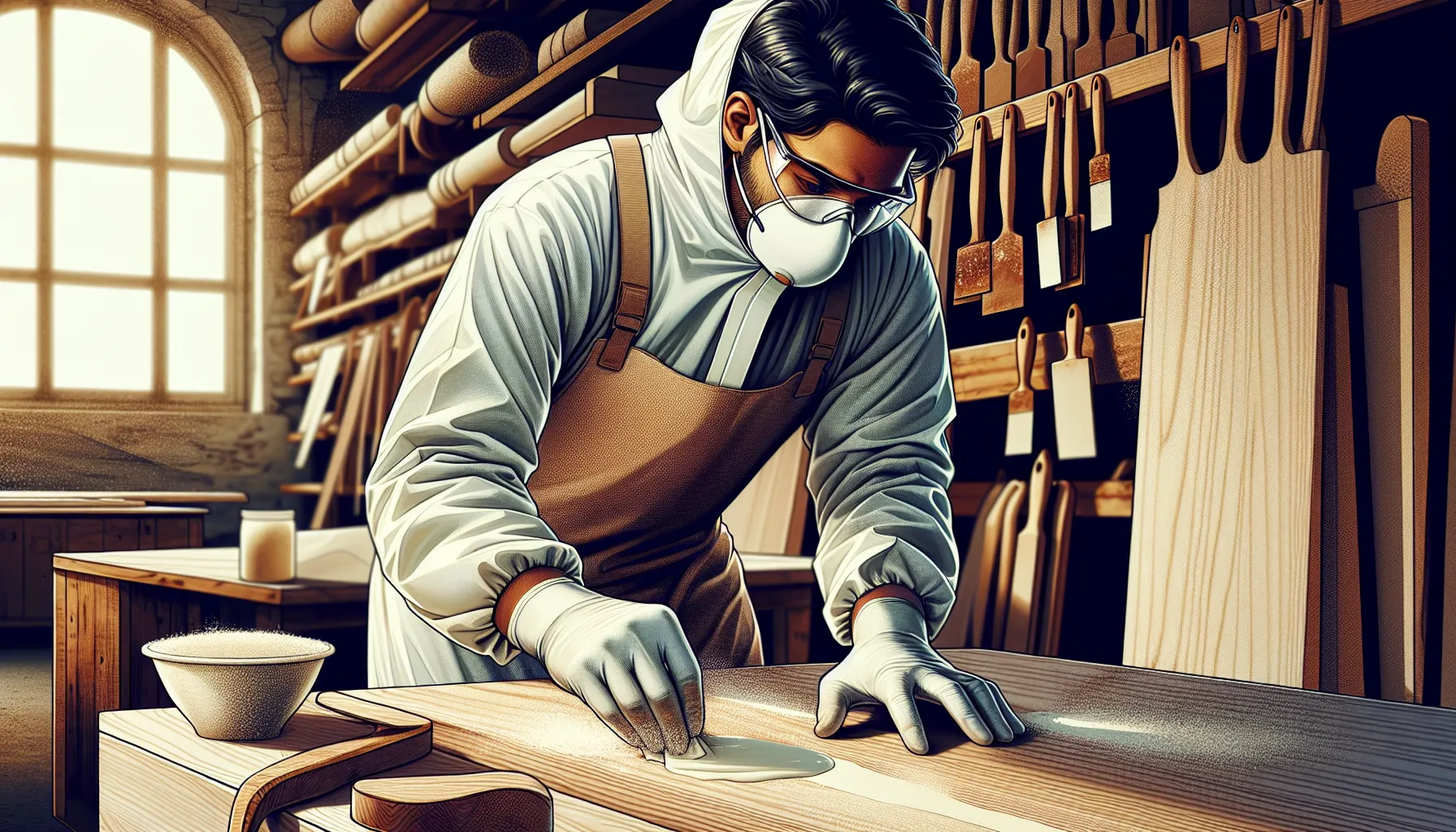 Riuniamo e organizziamo tutti gli strumenti, inclusi raschietti, pagliette metalliche, carta abrasiva e guanti in lattice. Indossiamo sempre mascherina e occhiali protettivi per prevenire il contatto con polveri o sostanze chimiche. Realizziamo un test preliminare applicando una piccola quantità di prodotto in un angolo nascosto della superficie in legno, così da valutare la reazione del materiale ed evitare danni.